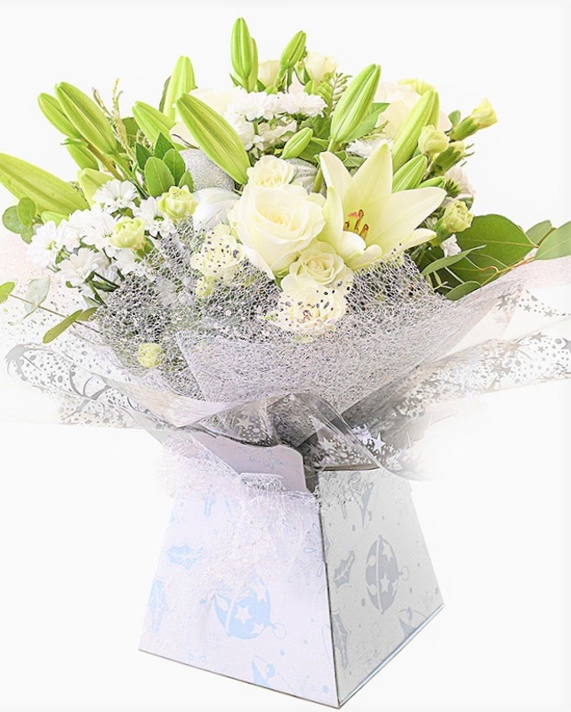 Classic whites - premium flowers arranged in a gift box