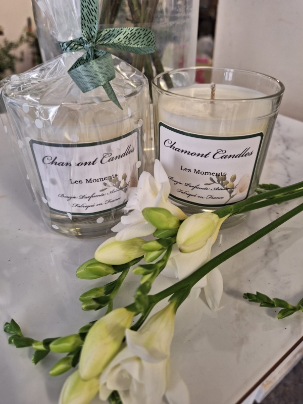 Handmade scented soy wax Candles by Chamont Candles are exclusive to Green Gate Flowers.