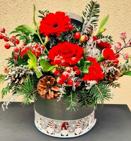 Gorgeous red flowers with Christmas foliage, frosted berries, designed with a touch of silver...  very pretty and available in three different sizes - why not add some Irish Chocolates or a handmade Scented Christmas Candle to create your own gift set!