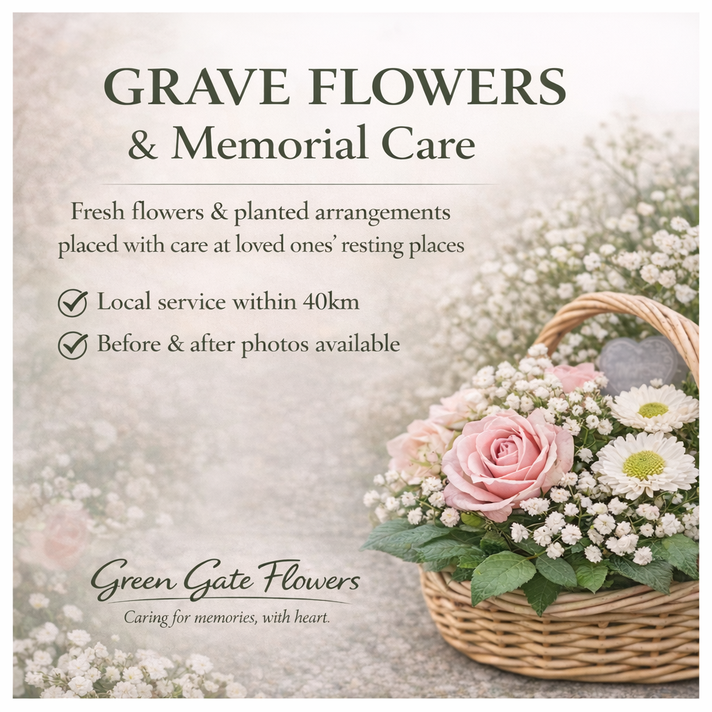 At Green Gate Flowers, we understand how important it is to keep a loved one's grave cared for - especially when life distance or time makes regular visits difficult.